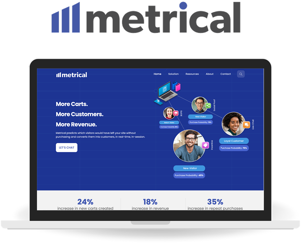 Metrical is a smart targeting and real-time engagement platform that uses artificial intelligence (AI) to predict when shoppers are likely to bounce or abandon their purchase. It then engages them by providing them with relevant guidance, substitute products, and, as a last resort, discounts.